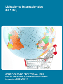 La licitación pública. Aplicación del principio de proporcionalidad a la selección objetiva de contratistas Calificación: 0 de 5 estrellas0 calificacionesUF0523 - Gestión de la documentación de constitución y de contratación de la empresa Calificación: 0 de 5 estrellas0 calificacionesMF0245_3 - Gestión de quejas y reclamaciones en materia de consumo Calificación: 0 de 5 estrellas0 calificacionesTeoría general de la administración. Apuntes para abogados Calificación: 0 de 5 estrellas0 calificacionesMF1796_3 - Asesoramiento de productos y servicios de seguros y reaseguros Calificación: 0 de 5 estrellas0 calificacionesUF1757 - Información y gestión operativa de la compraventa internacional. Calificación: 4 de 5 estrellas4/5Leyes aduanales y de comercio exterior 2016: Académica Calificación: 5 de 5 estrellas5/5UF1784 - Negociación y contratación internacional Calificación: 0 de 5 estrellas0 calificacionesNegociación y contratación internacional. COMM0110 Calificación: 0 de 5 estrellas0 calificacionesLeyes aduanales y de comercio exterior. Académica 2017 Calificación: 0 de 5 estrellas0 calificacionesDerecho portuario Calificación: 0 de 5 estrellas0 calificacionesLeyes Aduanales y de Comercio Exterior. Académica 2018 Calificación: 0 de 5 estrellas0 calificacionesInformación y gestión operativa de la compraventa internacional. COMM0110 Calificación: 0 de 5 estrellas0 calificacionesNegociación internacional: Enfoque estratégico Calificación: 5 de 5 estrellas5/5Importar desde China como un Experto: Estrategias, Herramientas y Secretos para el Éxito Calificación: 0 de 5 estrellas0 calificacionesUF1761 - Gestión de las operaciones de financiación internacional Calificación: 0 de 5 estrellas0 calificacionesCartas de crédito y garantías stand-by Calificación: 0 de 5 estrellas0 calificacionesFuentes Y Practicas Del Derecho Aduanero Internacional. Calificación: 5 de 5 estrellas5/5Cadenas de suministro, logística y prácticas colaborativas en el Caribe colombiano Calificación: 0 de 5 estrellas0 calificacionesGestión contable. ADGD0108 Calificación: 0 de 5 estrellas0 calificacionesAdministración integral del condominio.: Marco legal, aspecto contable-financiero y régimen fiscal Calificación: 4 de 5 estrellas4/5Contratos de comercio internacional Calificación: 3 de 5 estrellas3/5Manual de gestión aduanera: Normativas y procedimientos en el comercio internacional Calificación: 0 de 5 estrellas0 calificacionesNegocios internacionales. Fundamentos y estrategias 2Ed. Revisada y aumentada Calificación: 4 de 5 estrellas4/5Ley Aduanera Calificación: 0 de 5 estrellas0 calificacionesInnovación y tendencias empresariales Calificación: 0 de 5 estrellas0 calificacionesMF0244_3 - Medios de pago internacionales Calificación: 0 de 5 estrellas0 calificacionesUF1759 - Fiscalidad de las operaciones de comercio internacional Calificación: 0 de 5 estrellas0 calificacionesEL CONTENEDOR - Un invento que revolucionó el transporte marítimo y cambió el mundo para siempre Calificación: 0 de 5 estrellas0 calificacionesTransporte de larga distancia. COML0209 Calificación: 0 de 5 estrellas0 calificaciones