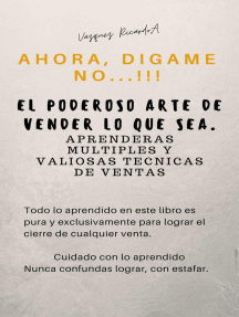 Vendiendo Con Éxito: Domina Las Técnicas Y Estrategias De Ventas. Cómo Aprender a Vender, Tipos de Cierres de Ventas, Métodos de Ventas y mucho más.: El Mundo es un Negocio y una Selva, #7 Calificación: 0 de 5 estrellas0 calificacionesVendiendo Fuera de lo Acostumbrado: Ideas Creativas para Ayudarle a Hacer Más Ventas Calificación: 3 de 5 estrellas3/5La Venta es una Guerra de Poder: 1, #1 Calificación: 0 de 5 estrellas0 calificacionesLa Secuencia De La Compra: The Buying Curve Calificación: 0 de 5 estrellas0 calificacionesConviértete en un nº 1 en ventas en 30 días: Coaching para aumentar tus ventas Calificación: 0 de 5 estrellas0 calificacionesGestión fácil de las objeciones al precio: 118 tácticas de venta de probada eficacia que te permitirán no quedarte sin palabras al negociar un precio Calificación: 0 de 5 estrellas0 calificacionesVentas Sin Límites: Conviértete en un Vendedor Irresistible y Lleva tu Negocio al Éxito Calificación: 0 de 5 estrellas0 calificacionesGuíaBurros: Secretos del vendedor: Aprende a ser un buen comercial Calificación: 4 de 5 estrellas4/5La venta emocional: Cómo crear una conexión real y humana con sus clientes Calificación: 5 de 5 estrellas5/5Cómo Dejar De Ser Empleado Para Siempre: Descubre Cómo Dejar tu Trabajo y No Regresar Nunca más a la Vida del Empleado Calificación: 0 de 5 estrellas0 calificaciones¡Vendido! Calificación: 4 de 5 estrellas4/5Guía para la Venta Directa - 2ª Edición Calificación: 0 de 5 estrellas0 calificacionesEl Mejor Vendedor del Mundo!: Business, #1 Calificación: 0 de 5 estrellas0 calificacionesResumen De ”Vender O Ser Vendido: Cómo Abrirse Camino En Los Negocios Y En La Vida” Calificación: 0 de 5 estrellas0 calificacionesVendedor De Clase Mundial Calificación: 0 de 5 estrellas0 calificacionesCómo Vender por Internet 2022 Calificación: 0 de 5 estrellas0 calificaciones¡Qué bello es vender! Enamórate y descubre el abc de las ventas con la historia de este vendedor de cursos inglés. Calificación: 5 de 5 estrellas5/5Ocho pasos para incrementar tus ventas fácilmente Calificación: 0 de 5 estrellas0 calificaciones10 Atajos Cerebrales para Redes de Mercadeo: Ayuda a los Prospectos a Tomar Grandiosas Decisiones Calificación: 0 de 5 estrellas0 calificacionesComo leer la mente de tu cliente: Técnicas aplicadas al mundo de las ventas Calificación: 5 de 5 estrellas5/5Persuasión Avanzada para Emprendedores Calificación: 4 de 5 estrellas4/5Cómo vender más fácilmente copiando estos casos de éxito en los negocios Calificación: 3 de 5 estrellas3/5El Funicular: La venta compleja consultiva Calificación: 0 de 5 estrellas0 calificacionesClientes para toda la vida: Lecciones invaluables para ganar y mantener la lealtad de sus clientes Calificación: 0 de 5 estrellas0 calificaciones¡No gracias... Sólo estoy mirando!: Técnicas Profesionales de venta para convertir visitantes en compradores Calificación: 4 de 5 estrellas4/510 Diez… ¡El Vendedor Perfecto!: El Vendedor Que Todo Empresario Desea Tener. Manual De Ventas Y Superación Personal Calificación: 5 de 5 estrellas5/5Entrenamiento para vendedores, desarrollo de habilidades comerciales: Basado en casos reales Calificación: 0 de 5 estrellas0 calificacionesVende más, vende mejor: 100 claves para el éxito Calificación: 5 de 5 estrellas5/5Qué Hacen los Patrocinadores Inteligentes: Impulsa Tu Equipo de Redes de Mercadeo Calificación: 0 de 5 estrellas0 calificacionesLa gente compra por usted: El verdadero secreto de lo que más importa en los negocios Calificación: 5 de 5 estrellas5/5
