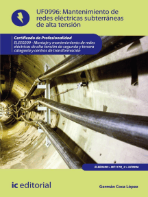 Mantenimiento de centros de transformación. ELEE0209 Calificación: 0 de 5 estrellas0 calificacionesMontaje de centros de transformación. ELEE0209 Calificación: 0 de 5 estrellas0 calificacionesMantenimiento de redes eléctricas aéreas de alta tensión. ELEE0209 Calificación: 0 de 5 estrellas0 calificacionesMontaje de redes eléctricas aéreas de alta tensión. ELEE0209 Calificación: 5 de 5 estrellas5/5Montaje de redes eléctricas subterráneas de baja tensión. ELEE0109 Calificación: 0 de 5 estrellas0 calificacionesMantenimiento de redes eléctricas aéreas de baja tensión. ELEE0109 Calificación: 0 de 5 estrellas0 calificacionesUF1446 - Supervisión de las pruebas de seguridad y funcionamiento realizadas en el mantenimiento de las instalaciones eléctricas en el entorno de edificios y con fines especiales Calificación: 0 de 5 estrellas0 calificacionesUF1965 - Operaciones auxiliares en el mantenimiento de equipos eléctricos Calificación: 0 de 5 estrellas0 calificacionesPrevención de riesgos laborales y medioambientales en el montaje y mantenimiento de instalaciones eléctricas. ELEE0109 Calificación: 0 de 5 estrellas0 calificacionesPrevención de riesgos profesionales y seguridad en el montaje de instalaciones solares. ENAE0108 Calificación: 0 de 5 estrellas0 calificacionesMontaje de redes eléctricas aéreas de baja tensión. ELEE0109 Calificación: 0 de 5 estrellas0 calificacionesUF1444 - Organización de las intervenciones necesarias para el mantenimiento de las instalaciones eléctricas en el entorno de edificios Calificación: 0 de 5 estrellas0 calificacionesMontaje y mantenimiento de transformadores. ELEE0109 Calificación: 0 de 5 estrellas0 calificacionesDiagnóstico de averías y mantenimiento correctivo de sistemas domóticos e inmóticos. ELEM0111 Calificación: 0 de 5 estrellas0 calificacionesUF1964 - Conexionado de componentes en equipos eléctricos y electrónicos Calificación: 5 de 5 estrellas5/5Para entender el código de red: Un análisis en torno a su implementación Calificación: 0 de 5 estrellas0 calificacionesElectrotecnia. ENAE0108 Calificación: 0 de 5 estrellas0 calificacionesTeoría de puestas a tierra Calificación: 4 de 5 estrellas4/5UF1441 - Planificación del montaje de las instalaciones eléctricas en el entorno de edificios y con fines especiales Calificación: 5 de 5 estrellas5/5Mantenimiento preventivo de sistemas de automatización industrial. ELEM0311 Calificación: 5 de 5 estrellas5/5Instalación y puesta en marcha de sistemas domóticos e inmóticos. ELEM0111 Calificación: 0 de 5 estrellas0 calificacionesMontaje y reparación de sistemas eléctricos y electrónicos de bienes de equipo y máquinas industriales. FMEE0208 Calificación: 0 de 5 estrellas0 calificacionesMantenimiento y reparación de instalaciones de telefonía y comunicación. ELES0108 Calificación: 0 de 5 estrellas0 calificacionesPrevención de riesgos laborales y mediambientales en el montaje y mantenimiento de sistemas de automatización industrial. ELEM0311 Calificación: 0 de 5 estrellas0 calificacionesCaracterización de los elementos y equipos básicos de instalaciones de telecomunicación en edificios. ELES0208 Calificación: 0 de 5 estrellas0 calificacionesMF1182_3 - Organización y gestión de los procesos de mantenimiento de las instalaciones eléctricas en el entorno de edificios y con fines especiales Calificación: 0 de 5 estrellas0 calificacionesUF1443 - Supervisión del montaje de las instalaciones eléctricas en el entorno de edificios y con fines especiales Calificación: 0 de 5 estrellas0 calificacionesUF1442 - Realización de las intervenciones necesarias para el montaje de las instalaciones eléctricas en el entorno de edificios Calificación: 0 de 5 estrellas0 calificacionesUF1966 - Operaciones auxiliares en el mantenimiento de equipos electrónicos Calificación: 5 de 5 estrellas5/5Generación de energía solar fotovoltaica Calificación: 0 de 5 estrellas0 calificaciones