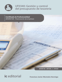 UF0314 - Gestión contable Calificación: 0 de 5 estrellas0 calificacionesUF0528 - Gestión y análisis contable de las operaciones económico-financieras Calificación: 0 de 5 estrellas0 calificacionesAdministración financiera: Modelos, enfoques, tendencias Calificación: 0 de 5 estrellas0 calificacionesFinanzas 4.0 - Estrategias Disruptivas para el Liderazgo Financiero Corporativo Calificación: 0 de 5 estrellas0 calificacionesUF1819 - Proyecto y viabilidad del negocio o microempresa Calificación: 1 de 5 estrellas1/5Apuntes de Finanzas Operativas: Lo básico para saber operar una empresa financieramente Calificación: 4 de 5 estrellas4/5GuíaBurros Estados contables: Todo lo que necesitas saber para interpretar la situación de una empresa Calificación: 4 de 5 estrellas4/5Manual de operaciones financieras Calificación: 0 de 5 estrellas0 calificacionesGestión contable. ADGD0108 Calificación: 0 de 5 estrellas0 calificacionesDiccionario De Administración Y Finanzas Calificación: 5 de 5 estrellas5/5Finanzas corporativas - un enfoque latinoamericano 3a ed. Calificación: 5 de 5 estrellas5/5Contabilidad de sociedades de capital (2013): Guzmán, Puerto, Manzano y Villacorta explican cómo abordar la contabilización de las sociedades de capital bajo la óptica del PGC 2007. Calificación: 0 de 5 estrellas0 calificacionesLas Fundaciones Financieras: Construyendo una Economía Personal Fuerte [Libro en Español/Spanish Book]: Money Matters Calificación: 0 de 5 estrellas0 calificacionesUF1822 - Gestión contable, fiscal y laboral en pequeños negocios o microempresas Calificación: 0 de 5 estrellas0 calificacionesFinanzas para todos Calificación: 4 de 5 estrellas4/5Indicadores de éxito para la PYME: 1, #1 Calificación: 0 de 5 estrellas0 calificacionesInstrumentos financieros: Análisis desde la gestión corporativa y la información financiera bajo las NIIF Calificación: 0 de 5 estrellas0 calificacionesContabilidad administrativa Calificación: 0 de 5 estrellas0 calificacionesGestión contable, fiscal y laboral de pequeños negocios o microempresas. ADGD0210 Calificación: 0 de 5 estrellas0 calificacionesMercados Financieros la Mejor Guía Para Principiantes Cómo Dominar los Bonos, las Criptomonedas, las Opciones, las Acciones y Alcanzar sus Objetivos Financieros: WARREN MEYERS, #1 Calificación: 0 de 5 estrellas0 calificacionesGuía HBR: Finanzas básicas Calificación: 4 de 5 estrellas4/5Gestión auxiliar de documentación económico-administrativa y comercial. ADGG0408 Calificación: 0 de 5 estrellas0 calificacionesGestión de la inversión y el financiamiento. Herramientas para la toma de decisiones Calificación: 0 de 5 estrellas0 calificacionesUF0318 - Auditoría de las áreas de la empresa Calificación: 0 de 5 estrellas0 calificacionesPresupuestos en Excel Calificación: 0 de 5 estrellas0 calificaciones¿Gano o pierdo?: La mirada inversora que toda pyme debe tener Calificación: 0 de 5 estrellas0 calificacionesContabilidad financiera a corto plazo Calificación: 1 de 5 estrellas1/5Gestión y control en restauración. HOTR0309 Calificación: 0 de 5 estrellas0 calificacionesFinanzas Para Empresas Competitivas: Conceptos Esenciales Para Decisiones Eficientes Calificación: 0 de 5 estrellas0 calificaciones