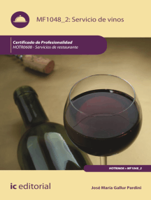 Bebidas. HOTR0508 Calificación: 5 de 5 estrellas5/5De vinos por Europa. 20 rutas imprescindibles en coche Calificación: 0 de 5 estrellas0 calificacionesEL PLACER DEL VINO Y LOS ESPIRITUOSOS: Un primer paso lleno de oportunidades Calificación: 0 de 5 estrellas0 calificacionesA cada plato su vino Calificación: 4 de 5 estrellas4/5MF1098_3 - Diseño de procesos de servicio en restauración Calificación: 5 de 5 estrellas5/5Cata de alimentos en hostelería. HOTR0110 Calificación: 0 de 5 estrellas0 calificacionesMF1060_3 - Cocina Creativa y de autor Calificación: 0 de 5 estrellas0 calificacionesJerez, Manzanilla y Montilla: Vinos Tradicionales de Andalucía Calificación: 5 de 5 estrellas5/5Preparación y cata de aguas, cafés e infusiones. HOTR0209 Calificación: 0 de 5 estrellas0 calificacionesSupervinos 2021 Calificación: 0 de 5 estrellas0 calificacionesMF1062_3 - Cata de alimentos en hostelería Calificación: 0 de 5 estrellas0 calificacionesSupervinos 2020: La guía de vinos de supermercado Calificación: 0 de 5 estrellas0 calificacionesDiccionario de vozes culinarias Calificación: 0 de 5 estrellas0 calificacionesCoctelería In-Trínseca Calificación: 0 de 5 estrellas0 calificacionesPasión por el vino: Secretos y placeres de los grandes vinos del mundo Calificación: 4 de 5 estrellas4/5El libro de los vinos de Jerez: Guía para comprender unos vinos únicos Calificación: 0 de 5 estrellas0 calificacionesMaestro cervecero: Guía para elaborar tu propia cerveza Calificación: 0 de 5 estrellas0 calificacionesVino para uno Calificación: 5 de 5 estrellas5/5Cultivar la vid Calificación: 5 de 5 estrellas5/5Elaboración de vinos, otras bebidas alcohólicas, aguas, cafés e infusiones. HOTR0209 Calificación: 0 de 5 estrellas0 calificacionesGestión de bodegas en restauración. HOTR0209 Calificación: 0 de 5 estrellas0 calificacionesEncuentra tu vino ideal Calificación: 0 de 5 estrellas0 calificacionesCATA DE GINEBRAS Calificación: 0 de 5 estrellas0 calificacionesAnálisis sensorial de vinos: Manual de la Especialidad Formativa. HOTR001PO Calificación: 0 de 5 estrellas0 calificacionesServicio básico de alimentos y bebidas y tareas de postservicio en el restaurante. HOTR0208 Calificación: 0 de 5 estrellas0 calificacionesUF0687 - Gestión gastronómica en alojamientos ubicados en entornos rurales y/o naturales Calificación: 0 de 5 estrellas0 calificacionesServicio de vinos. HOTR0508 Calificación: 0 de 5 estrellas0 calificacionesBebidas. HOTR0409 Calificación: 2 de 5 estrellas2/5Servicio de vinos. HOTR0409 Calificación: 0 de 5 estrellas0 calificacionesSistemas de aprovisionamiento y mise en place en el Restaurante. HOTR0608 Calificación: 0 de 5 estrellas0 calificaciones