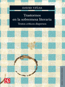 Fondo de Cultura EconómicaTrastornos en la sobremesa literaria reúne más de cincuenta artículos publicados por David Viñas a lo largo de casi tres décadas. Se trata de textos dispersos: aparecen en diarios y revistas de Argentina, Perú, México, España y Francia, entre 1974 y 2008, y marcan el doble desplazamiento hacia el exilio y el retorno a Argentina. Dispersos también en la medida en que se distancian del espacio literario propiamente dicho para situarse en una zona amplia del debate cultural.