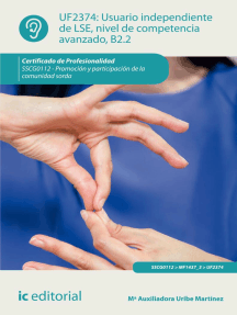Usuario independiente de LSE, nivel de competencia avanzado B2.1. SSCG0112 Calificación: 0 de 5 estrellas0 calificacionesUsuario independiente de LSE, nivel de competencia umbral, B1. SSCG0211 Calificación: 0 de 5 estrellas0 calificacionesUsuario independiente de LSE, nivel de competencia umbral, B1. SSCG0112 Calificación: 0 de 5 estrellas0 calificacionesFomento y apoyo asociativo. SSCG0112 Calificación: 0 de 5 estrellas0 calificacionesMF0985_2 - Lengua extranjera profesional distinta del inglés para la asistencia en dirección Calificación: 0 de 5 estrellas0 calificacionesEl diálogo oral en el mundo hispanohablante: Estudios teóricos y aplicados. Calificación: 0 de 5 estrellas0 calificacionesSensibilización social y cultural de la realidad de las personas sordas. SSCG0112 Calificación: 0 de 5 estrellas0 calificacionesMediación lingüística en la enseñanza de lenguas:aportaciones del volumen complementario y recursos para el aula Calificación: 0 de 5 estrellas0 calificacionesUsuario independiente de LSE, nivel de competencia avanzado B2.1. SSCG0211 Calificación: 0 de 5 estrellas0 calificacionesAsesoramiento sobre la Comunidad Sorda Calificación: 0 de 5 estrellas0 calificacionesEl desarrollo del lenguaje y la comunicación en la infancia Calificación: 0 de 5 estrellas0 calificacionesUF0331 - Interacciones orales en el entorno empresarial en lengua inglesa Calificación: 0 de 5 estrellas0 calificacionesOrigen y desarrollo de los Museos Interactivos de Ciencia y Tecnología Calificación: 0 de 5 estrellas0 calificacionesConvivencia y Tejido Asociativo de las Personas Sordas: Convivencia y Tejido Asociativo de las Personas Sordas Calificación: 0 de 5 estrellas0 calificacionesEl mediador comunicativo en el equipo interdisciplinar educativo. SSCG0211 Calificación: 0 de 5 estrellas0 calificacionesIntervención educativa del mediador comunicativo. SSCG0211 Calificación: 0 de 5 estrellas0 calificacionesIntroducción a la lingüística clínica: Aproximaciones a los trastornos de la comunicación Calificación: 0 de 5 estrellas0 calificacionesHabilidades de comunicación y promoción de conductas adaptadas de la persona con discapacidad. SSCG0109 Calificación: 0 de 5 estrellas0 calificacionesGramática didáctica del español Calificación: 4 de 5 estrellas4/5Voces de la ligüística mexicana contemporánea Calificación: 0 de 5 estrellas0 calificacionesFonoaudiología: ¿Comunicación para el desarrollo humano?: La experiencia social y comunitaria de la Universidad del Valle Calificación: 0 de 5 estrellas0 calificacionesEstudios Doctorales En Diversidad Sorda: Comunicación, Educación E Interculturalidad En Chile. Calificación: 0 de 5 estrellas0 calificacionesParticipación de la Comunidad Sorda Calificación: 0 de 5 estrellas0 calificacionesSensibilización Social y Cultural de la Realidad de las Personas Sordas Calificación: 0 de 5 estrellas0 calificacionesPalabras invasoras: El español de las nuevas tecnologías Calificación: 0 de 5 estrellas0 calificacionesLa lengua y los lenguajes Calificación: 0 de 5 estrellas0 calificacionesDialogar con autores: Construir una voz propia en textos universitarios desde la lectura Calificación: 0 de 5 estrellas0 calificacionesAlumnos con déficit auditivo: Un nuevo método de enseñanza-aprendizaje Calificación: 5 de 5 estrellas5/5Sociolingüistica: Enfoque pragmático y variacionista Calificación: 0 de 5 estrellas0 calificacionesSaber SABER Lenguaje. Guía del maestro Calificación: 0 de 5 estrellas0 calificaciones