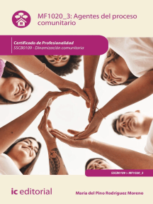 Contextos sociales de intervención comunitaria. SSCG0209 Calificación: 0 de 5 estrellas0 calificacionesAplicación de los procesos innovadores en los servicios de información juvenil. SSCE0109 Calificación: 0 de 5 estrellas0 calificacionesMetodología de la dinamización comunitaria. SSCB0109 Calificación: 0 de 5 estrellas0 calificacionesImpulso de la igualdad de oportunidades entre mujeres y hombres. SSCB0109 Calificación: 5 de 5 estrellas5/5Fomento y apoyo asociativo. SSCG0112 Calificación: 0 de 5 estrellas0 calificacionesFomento y apoyo asociativo. SSCE0109 Calificación: 0 de 5 estrellas0 calificacionesProgramación y evaluación aplicadas a la gestión cultural. SSCB0110 Calificación: 0 de 5 estrellas0 calificacionesUF1948 - Programación, ejecución y difusión de proyectos educativos en el tiempo libre Calificación: 0 de 5 estrellas0 calificacionesCoordinación y dinamización del equipo de monitores de tiempo libre. SSCB0211 Calificación: 0 de 5 estrellas0 calificacionesPerfil del animador sociocultural Calificación: 0 de 5 estrellas0 calificacionesLa intervención socioeducativa: Como prisma de la transformación social Calificación: 0 de 5 estrellas0 calificacionesOrganización y gestión de acciones de dinamización de la información para jóvenes. SSCE0109 Calificación: 0 de 5 estrellas0 calificacionesAnálisis de la información juvenil en el contexto de las políticas de la juventud. SSCE0109 Calificación: 0 de 5 estrellas0 calificacionesMetodología de empleo con apoyo en la inserción sociolaboral de personas con discapacidad. SSCG0109 Calificación: 0 de 5 estrellas0 calificacionesDinámica de grupos: Técnicas y tácticas Calificación: 5 de 5 estrellas5/5Recursos de la programación cultural. SSCB0110 Calificación: 0 de 5 estrellas0 calificacionesDiseño de Proyectos Sociales: Aplicaciones prácticas para su planificación, gestión y evaluación Calificación: 5 de 5 estrellas5/5Los grupos de discusión en Investigación Cualitativa Calificación: 5 de 5 estrellas5/5Redes asociativas culturales. SSCB0110 Calificación: 0 de 5 estrellas0 calificacionesGestión de conflictos entre agentes comunitarios. SSCB0109 Calificación: 0 de 5 estrellas0 calificacionesIntervención en pedagogía social: Espacios y metodología Calificación: 0 de 5 estrellas0 calificacionesOrganización de acciones socioeducativas dirigidas a jóvenes en el marco de la educación no formal. SSCE0109 Calificación: 0 de 5 estrellas0 calificacionesdinamicas grupales y el proceso de aprendizaje, Las Calificación: 0 de 5 estrellas0 calificacionesOrigen, Desarrollo Y Naturaleza De Los Intereses Calificación: 0 de 5 estrellas0 calificacionesEl taller de la risa Calificación: 4 de 5 estrellas4/5Teoría sociológica: Enfoques diversos, fundamentos comunes Calificación: 5 de 5 estrellas5/5Problemas sociales y trabajo social: Hacia la inclusión y el cambio sociales Calificación: 5 de 5 estrellas5/5Desarrollo psicocultural de niños mexicanos Calificación: 0 de 5 estrellas0 calificacionesEl quehacer nuestro de cada día: Cooperación humana y experiencia social Calificación: 3 de 5 estrellas3/5UF1423 - Recursos de la programación cultural Calificación: 0 de 5 estrellas0 calificaciones