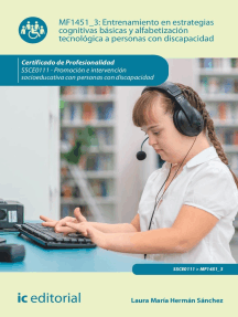 Acompañamiento de personas con discapacidad en actividades programadas. SSCE0111 Calificación: 0 de 5 estrellas0 calificacionesRecursos sociales y comunitarios para personas con discapacidad. SSCE0111 Calificación: 0 de 5 estrellas0 calificacionesGestión de recursos laborales, formativos y análisis de puestos de trabajo para la inserción sociolaboral de personas con discapacidad. SSCG0109 Calificación: 0 de 5 estrellas0 calificacionesMetodología de empleo con apoyo en la inserción sociolaboral de personas con discapacidad. SSCG0109 Calificación: 0 de 5 estrellas0 calificacionesIntervención con familias de personas con discapacidad. SSCE0111 Calificación: 0 de 5 estrellas0 calificacionesDesarrollo de habilidades personales y sociales de las personas con discapacidad. SSCG0109 Calificación: 0 de 5 estrellas0 calificacionesIntervención en la atención sociosanitaria en instituciones. SSCS0208 Calificación: 0 de 5 estrellas0 calificacionesApoyo en la organización de actividades para personas dependientes en instituciones. SSCS0208 Calificación: 0 de 5 estrellas0 calificacionesInterrelación, comunicación y observación con la persona dependiente y su entorno. SSCS0108 Calificación: 0 de 5 estrellas0 calificacionesActividades complementarias y de descanso del alumnado con necesidades educativas especiales. SSCE0112 Calificación: 0 de 5 estrellas0 calificacionesTécnicas de comunicación con personas dependientes en instituciones. SSCS0208 Calificación: 0 de 5 estrellas0 calificacionesOrganización de acciones socioeducativas dirigidas a jóvenes en el marco de la educación no formal. SSCE0109 Calificación: 0 de 5 estrellas0 calificacionesHabilidades de comunicación y promoción de conductas adaptadas de la persona con discapacidad. SSCG0109 Calificación: 0 de 5 estrellas0 calificacionesOrientación educativa y universidad: Serie: Orientación Educativa Universitaria Calificación: 0 de 5 estrellas0 calificacionesMF1425_2 - Manejo de herramientas, técnicas y habilidades para la prestación de un servicio de teleasistencia Calificación: 0 de 5 estrellas0 calificacionesSeguimiento del proceso de inserción sociolaboral de personas con discapacidad. SSCG0109 Calificación: 0 de 5 estrellas0 calificacionesProgramación didáctica de acciones formativas para el empleo. SSCE0110 Calificación: 0 de 5 estrellas0 calificacionesContextos sociales de intervención comunitaria. SSCG0209 Calificación: 0 de 5 estrellas0 calificacionesAplicación de los sistemas alternativos y aumentativos de comunicación. SSCE0112 Calificación: 0 de 5 estrellas0 calificacionesBuenas prácticas de Educación Social en acogimiento residencial: Fundamentos de Educación Social con infancia, adolescencia y juventud en acogimiento residencial Calificación: 0 de 5 estrellas0 calificacionesAtención socioeducativa a personas con discapacidad y/o dependencia Calificación: 0 de 5 estrellas0 calificacionesApoyo en la recepción y acogida en instituciones de personas dependientes. SSCS0208 Calificación: 0 de 5 estrellas0 calificacionesOrganización y gestión de acciones de dinamización de la información para jóvenes. SSCE0109 Calificación: 0 de 5 estrellas0 calificacionesAnimación social de personas dependientes en instituciones. SSCS0208 Calificación: 0 de 5 estrellas0 calificacionesFomento y apoyo asociativo. SSCE0109 Calificación: 0 de 5 estrellas0 calificacionesMantenimiento y rehabilitación psicosocial de las personas dependientes en domicilio. SSCS0108 Calificación: 0 de 5 estrellas0 calificacionesProcesos grupales y educativos en el tiempo libre infantil y juvenil. SSCB0211 Calificación: 0 de 5 estrellas0 calificacionesApoyo a las gestiones cotidianas de las personas dependientes. SSCS0108 Calificación: 0 de 5 estrellas0 calificacionesProgramas de actividad lúdica en el recreo. SSCE0112 Calificación: 0 de 5 estrellas0 calificacionesIntervención en la atención higiénico-alimentaria en instituciones. SSCS0208 Calificación: 0 de 5 estrellas0 calificaciones
