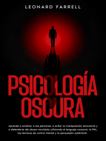 Psicología Oscura: Guía Esencial de Psicoanálisis Calificación: 0 de 5 estrellas0 calificacionesManipulación Calificación: 0 de 5 estrellas0 calificacionesPsicología Oscura: Domine la Persuasión, Negociación y la PNL y Libere el Poder de Comprender la Manipulación, el Engaño y el Comportamiento Humano Calificación: 0 de 5 estrellas0 calificacionesPNL - Claves Para Ser Más Feliz Calificación: 0 de 5 estrellas0 calificacionesEl Arte de la Manipulación y la Psicología Oscura: Domina Técnicas Secretas de Persuasión, Control Mental, Lectura de Personas, Programación Neurolingüistica (PNL), Lenguaje Corporal, Manipulación Emocional, Persuasión Subliminal y Control del Comportamiento para Influenciar la Mente de los Demás Calificación: 0 de 5 estrellas0 calificacionesManipulación: Cómo evitar el control mental de un narcisista y curarse del abuso Calificación: 5 de 5 estrellas5/5Psicología oscura Calificación: 5 de 5 estrellas5/5Secretos de la Psicología Oscura: Cómo dominar la persuasión, el control mental y la manipulación para protegerte de engaños comúnmente usados en mentes débiles Calificación: 0 de 5 estrellas0 calificacionesLa trampa de los manipuladores Calificación: 5 de 5 estrellas5/5Manipulación Calificación: 5 de 5 estrellas5/5El amor no maltrata: Todo lo que necesitas para identificar y escapar del maltrato en la pareja Calificación: 5 de 5 estrellas5/5Secretos de la manipulación, negociación y persuasión Técnicas prohibidas usadas para conseguir el fin deseado Calificación: 4 de 5 estrellas4/5El Arte de la Persuasión: Cómo ser más Persuasivo y Convincente para Lograr Siempre lo que Quieres Calificación: 3 de 5 estrellas3/5Técnicas de persuasión y comunicación digital Calificación: 4 de 5 estrellas4/5